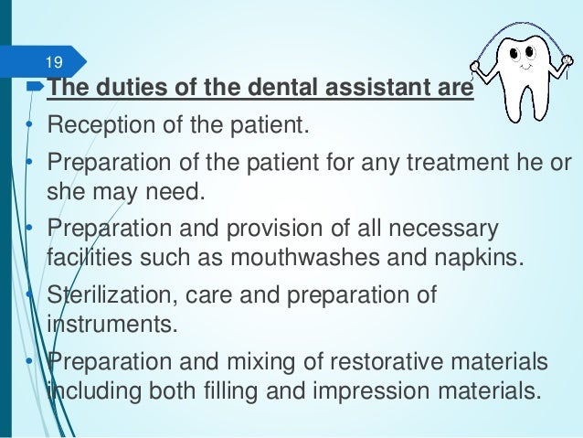 Center. The Dental Assistant is also responsible for sterilization, preparation and inventory control of dental instruments and supplies. to the participation of a Dental Assistant in the provision of clinical dental care, as SAMPLE POSITION dental asstnt ... View Document