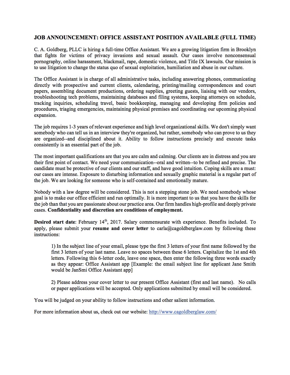 Job Announcement & Supplemental Questions Judicial & Executive Administrative Assistant Recruitment Dental insurance enrollment is required and the Court contributes to the monthly screening phase may be contacted by phone or email and asked to participate in an oral interview ... View Doc