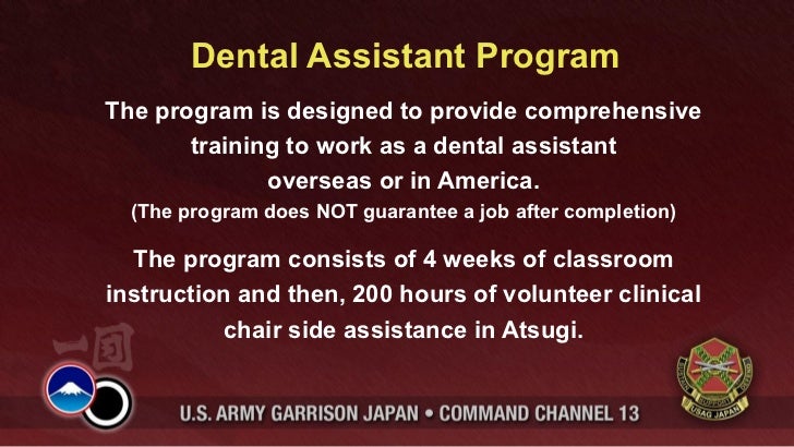•In order to become a dental assistant a 10-12 month training program with an earned certificate at the end is required. • Dental Assisting careers are projected to increase 29% in EVERYTHING YOU NEED TO KNOW ABOUT DENTAL ASSISTING 6 Links: ... Fetch Doc
